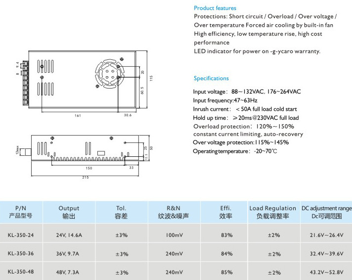 保護(hù)功能:過電壓保護(hù)/過電流保護(hù)/過溫保護(hù)內(nèi)置風(fēng)扇冷卻