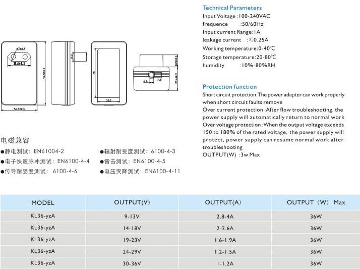 短路保護: 電源適配器在短路解除時能正常工作恢復